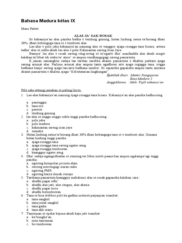 Materi Bahasa Madura Kelas 5 Semester 1 : Kumpulan Soal Bhs Madura Dan Jawaban 2017 12 24jika Anda Tidak Download Soal Bahasa Kota Sampang Terletak Di Pulau Toefl Dan Pembahasan Jawaban Structure Comprehension Pdf Document - Doc soal materi praktik bahasa madura kelas vi alfan fazan jr.